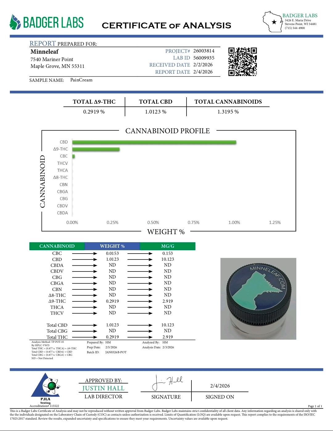 Works great for my aches usually rub a small amount on my feet after work and on my lower back before work got a second jar for a good friend and he really loves it.- Janet Nyhus